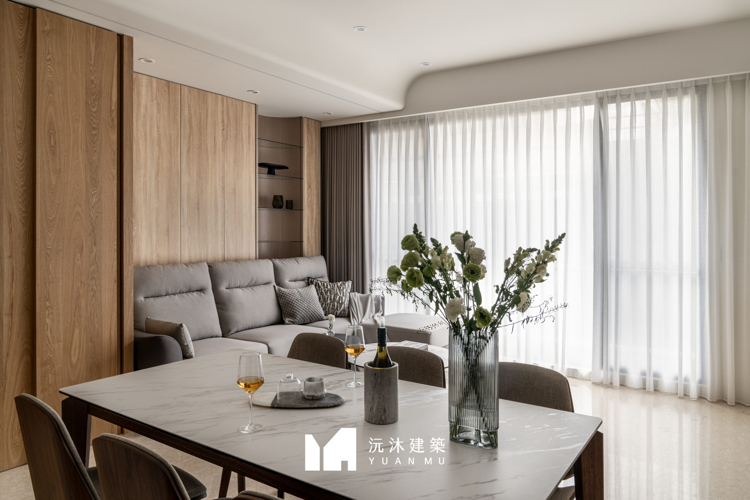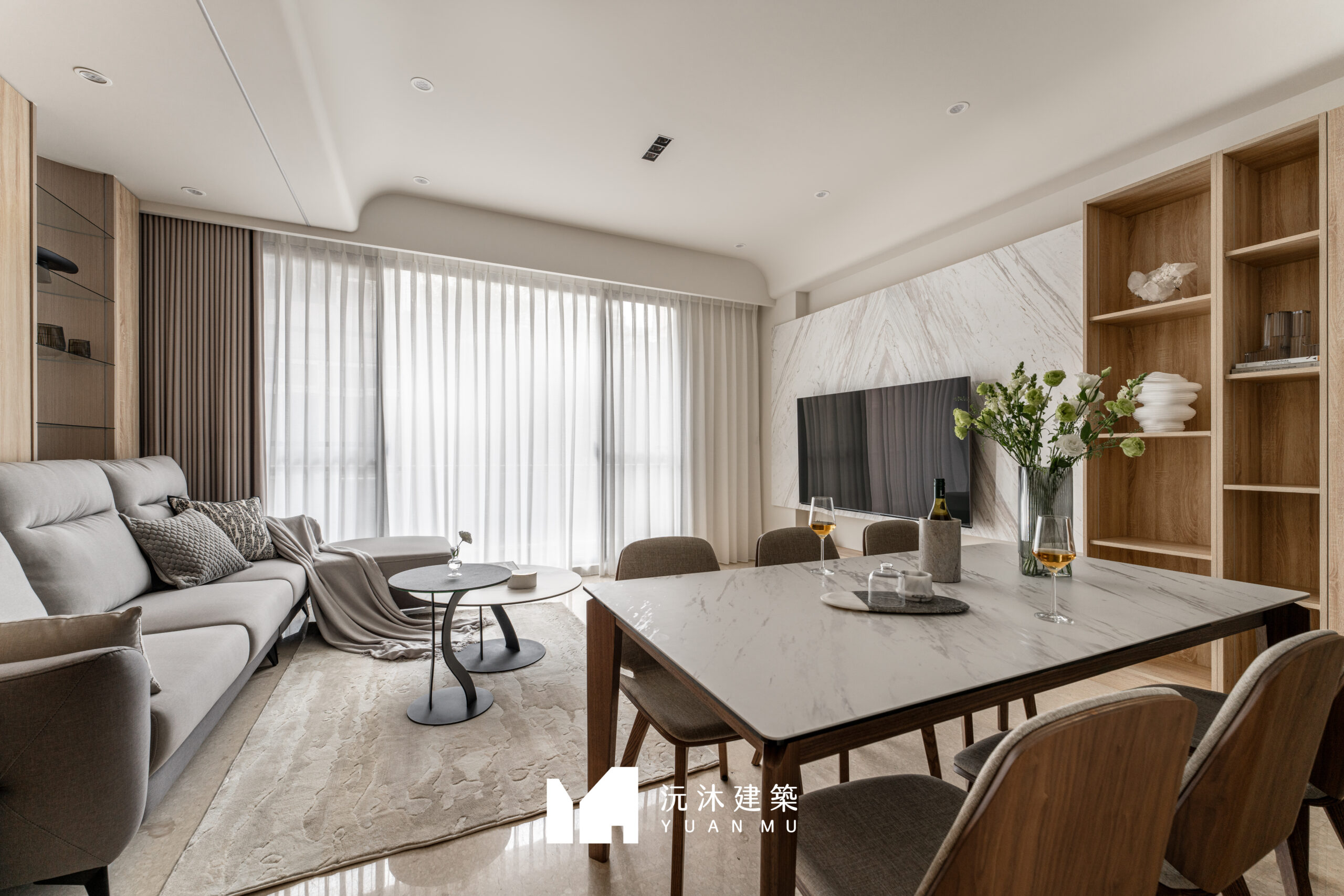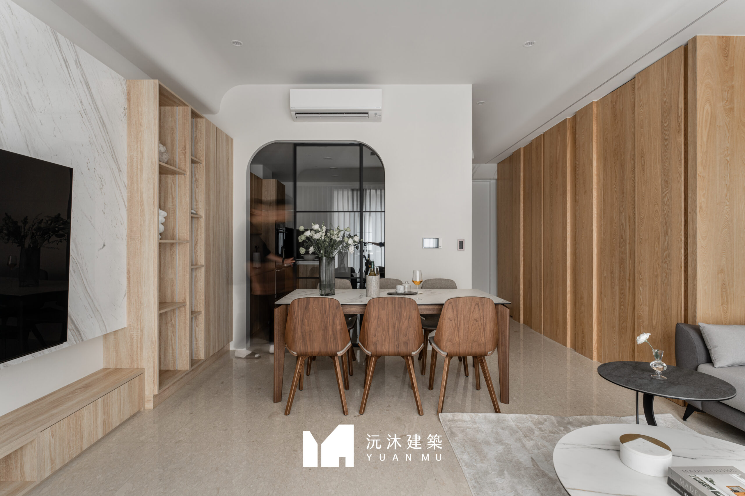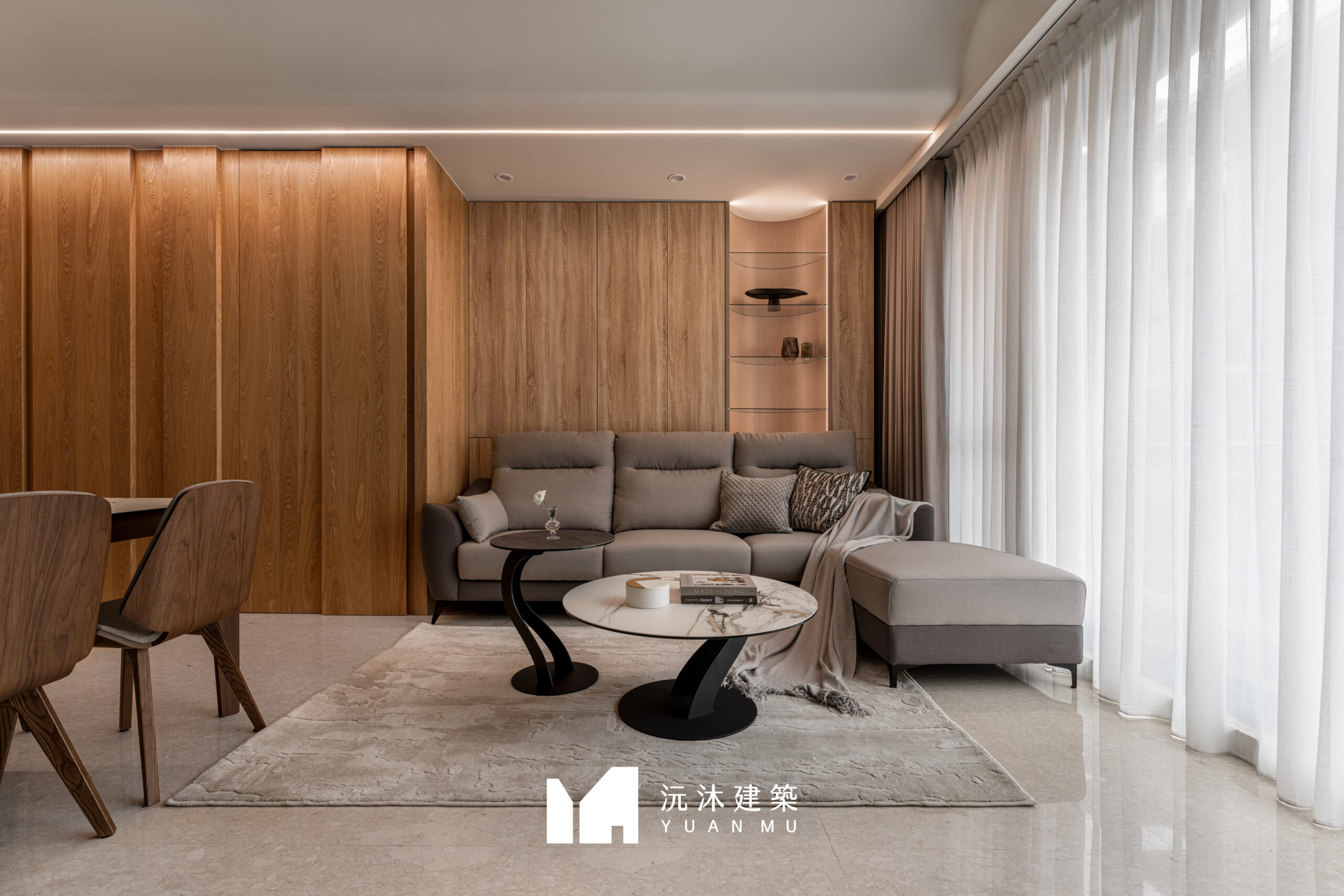 客廳作為家的核心,透過材質的精準比例調配,展現現代混搭風的精髓