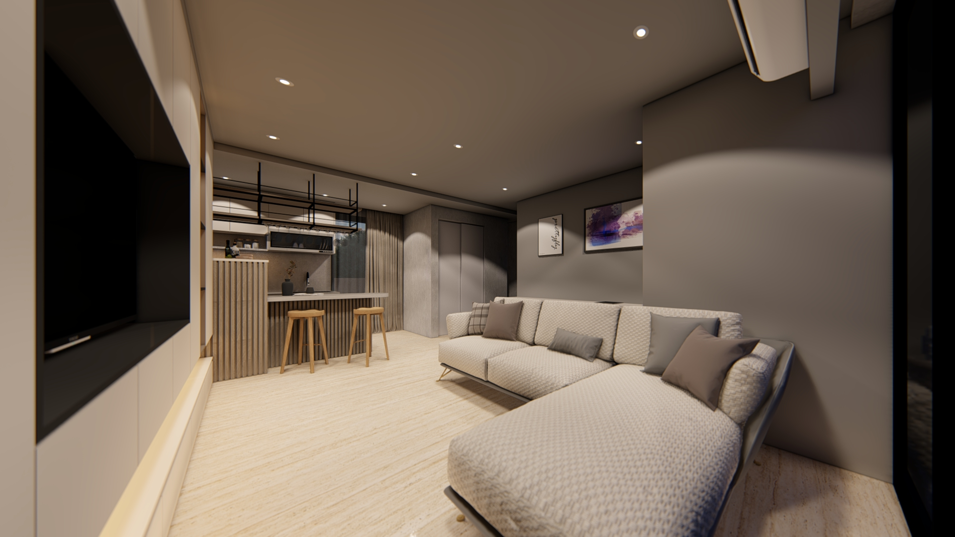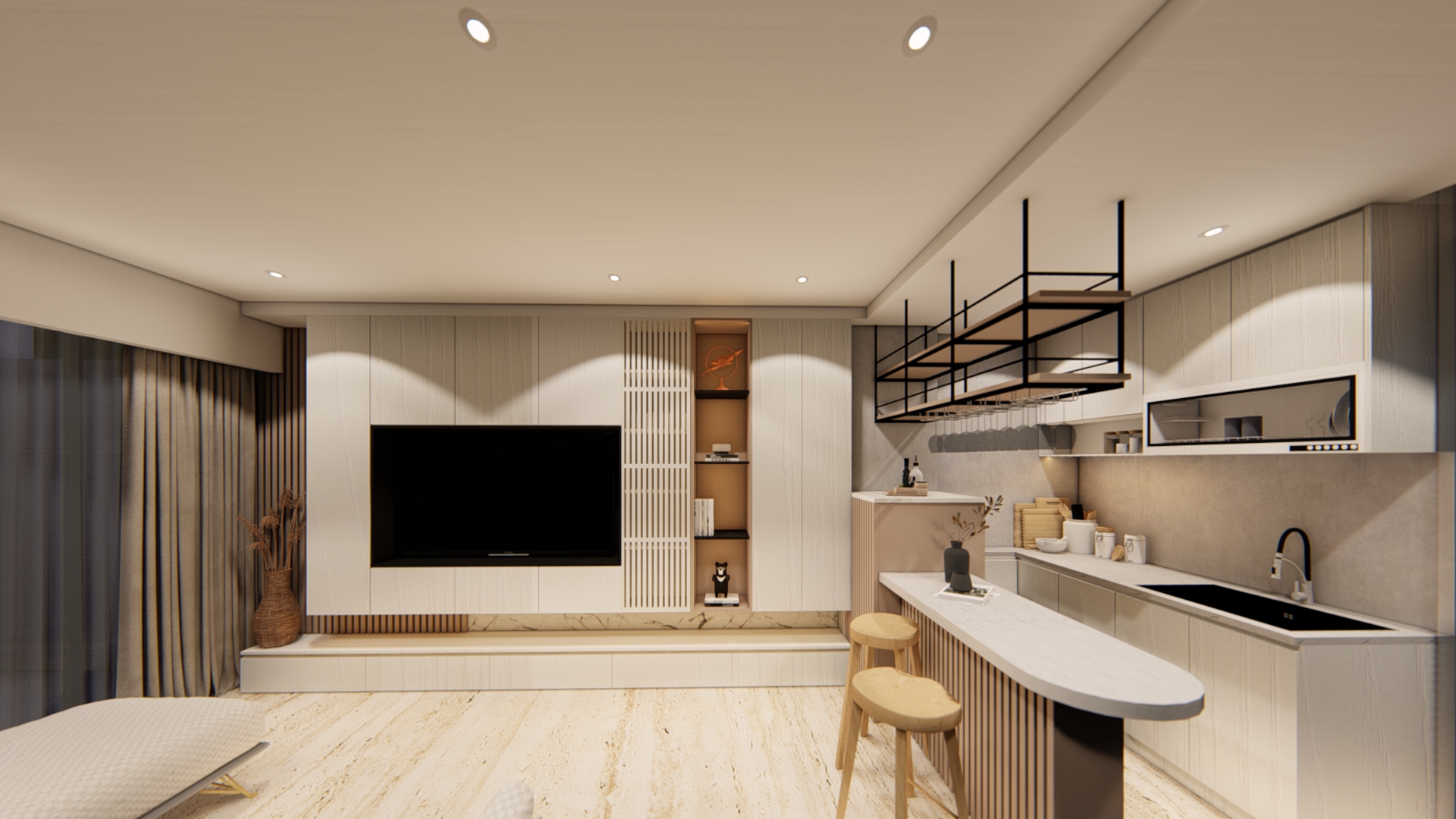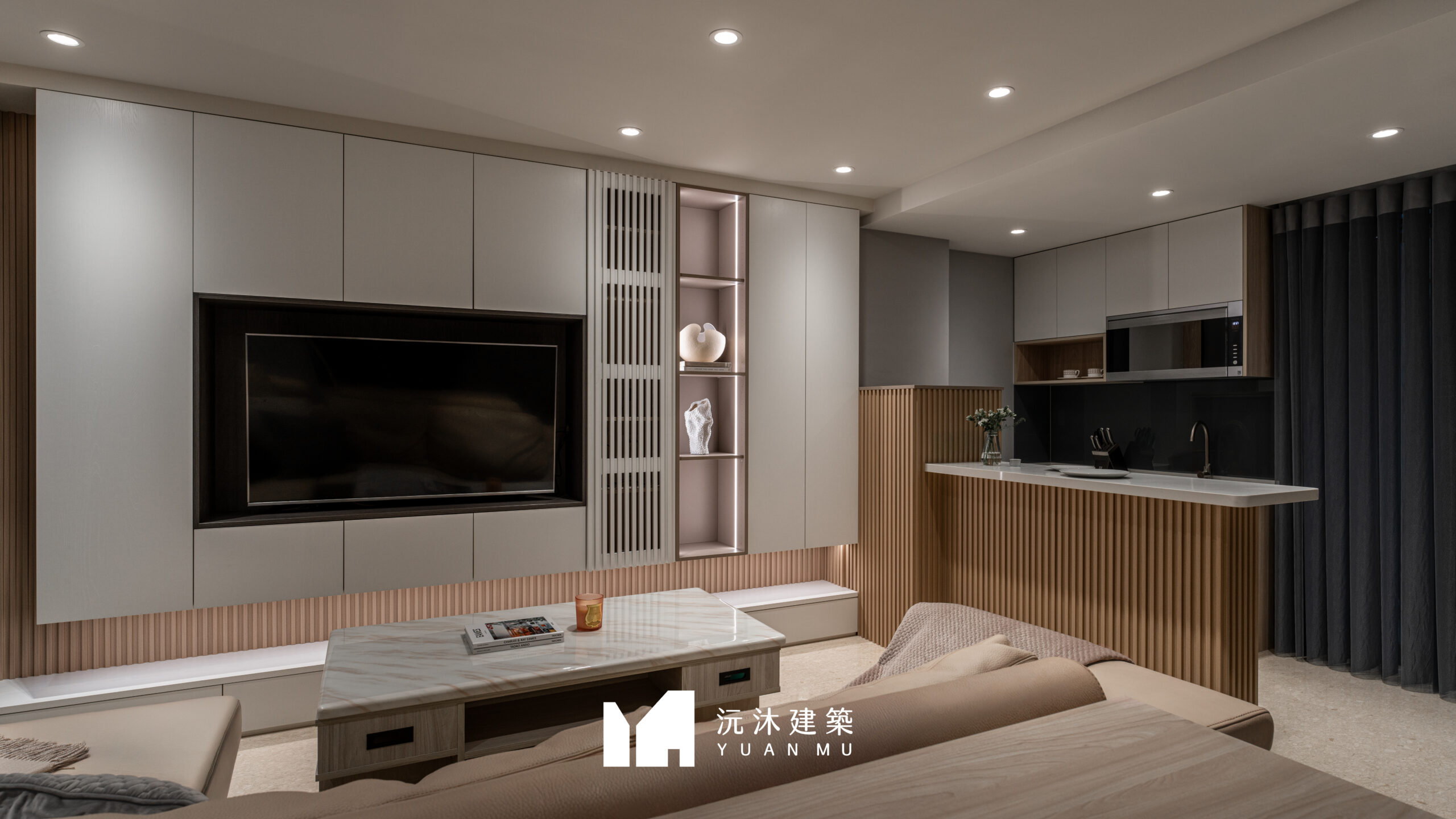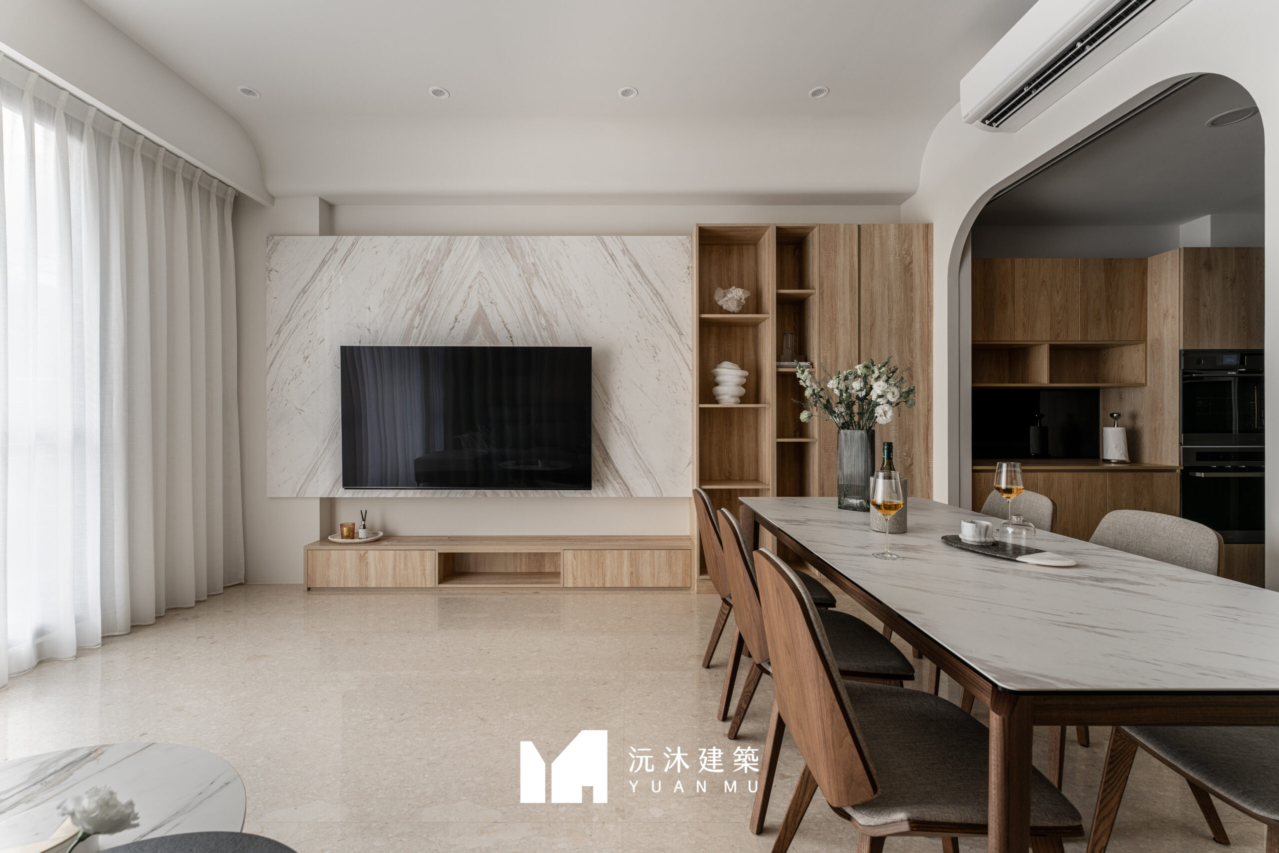 客廳作為家的核心,透過材質的精準比例調配,展現現代混搭風的精髓